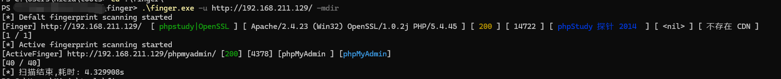 1 | .\finger.exe -u http://192.168.211.129/ -mdir |