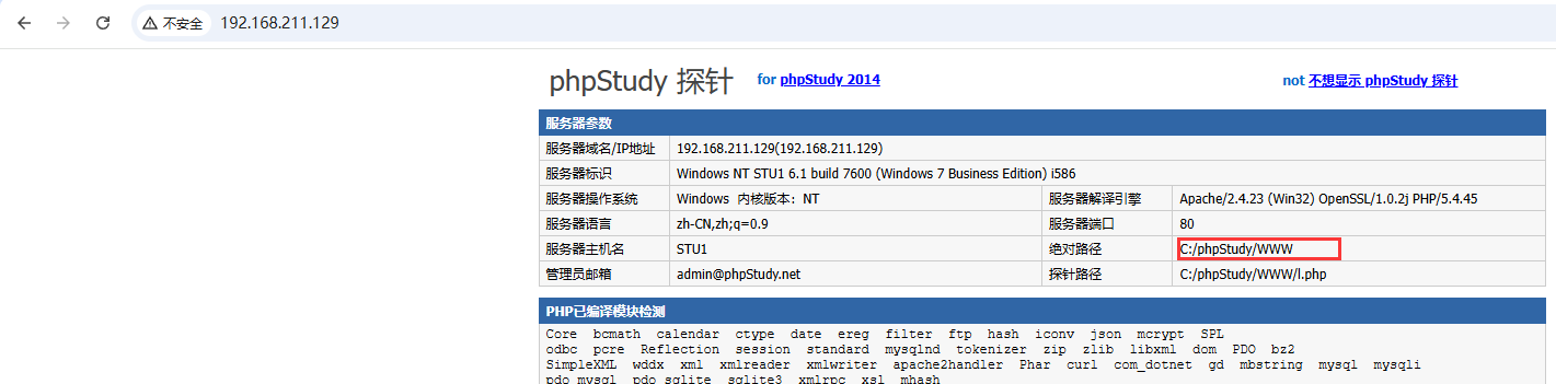 - 目标已经提供phpinfo探针记录。直接获取到网站绝对路径.