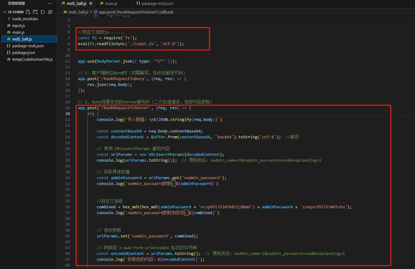 本次测试,为方便后续遇到的一些复杂的js情况,直接把代码扣到本地文件,直接调用加密参数。根据python脚本实现的功能接口,使用Node.js起HTTP服务,方便后续环境中如果遇到复杂的js函数,可以直接调用函数。