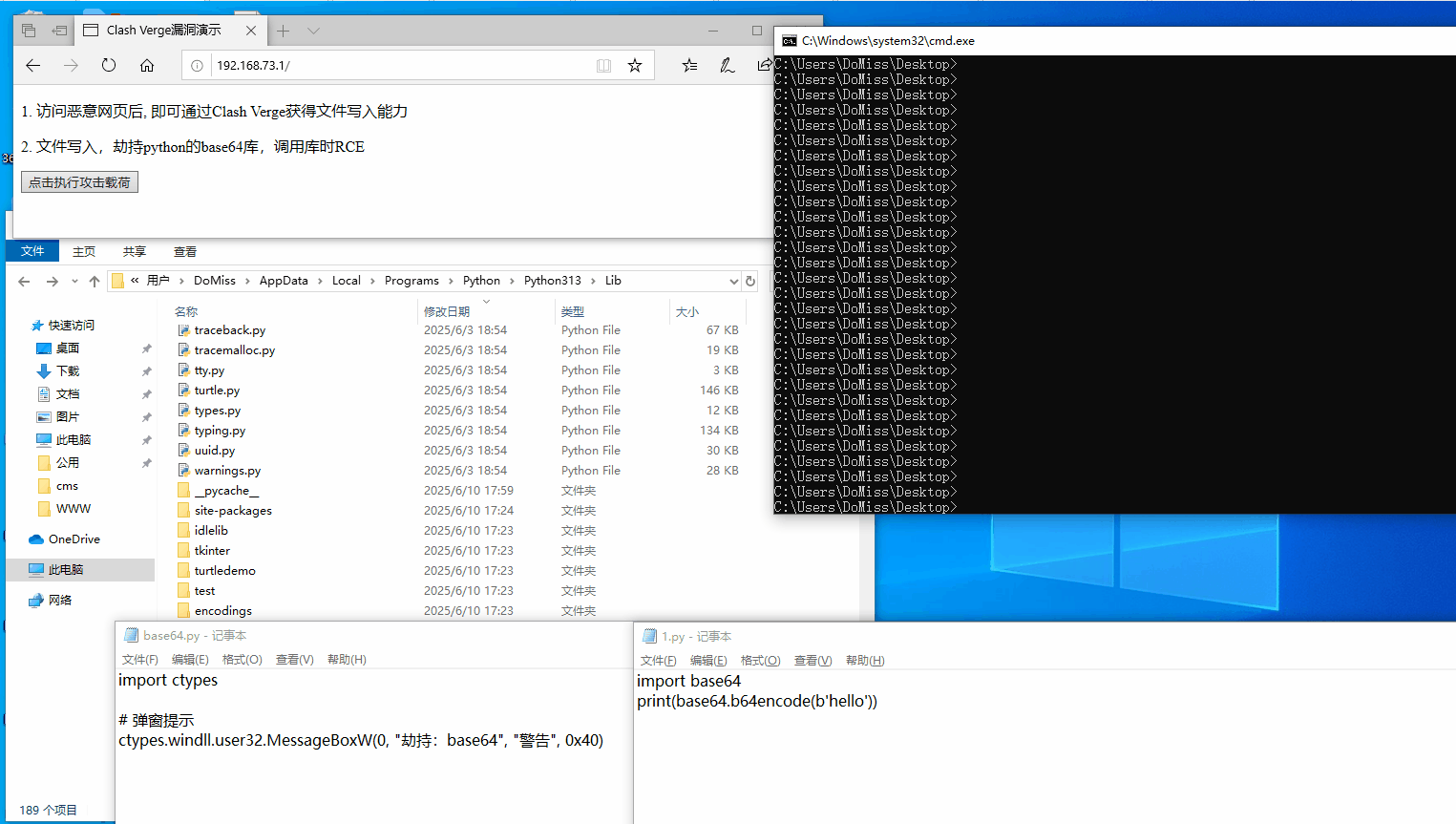 - 劫持python的base64库,触发执行,实现 RCE 执行任意py代码。