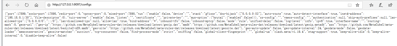 由于Clash的9097端口,API服务默认开启,未鉴权,导致直接调用。访问http://127.0.0.1:9097/configs。